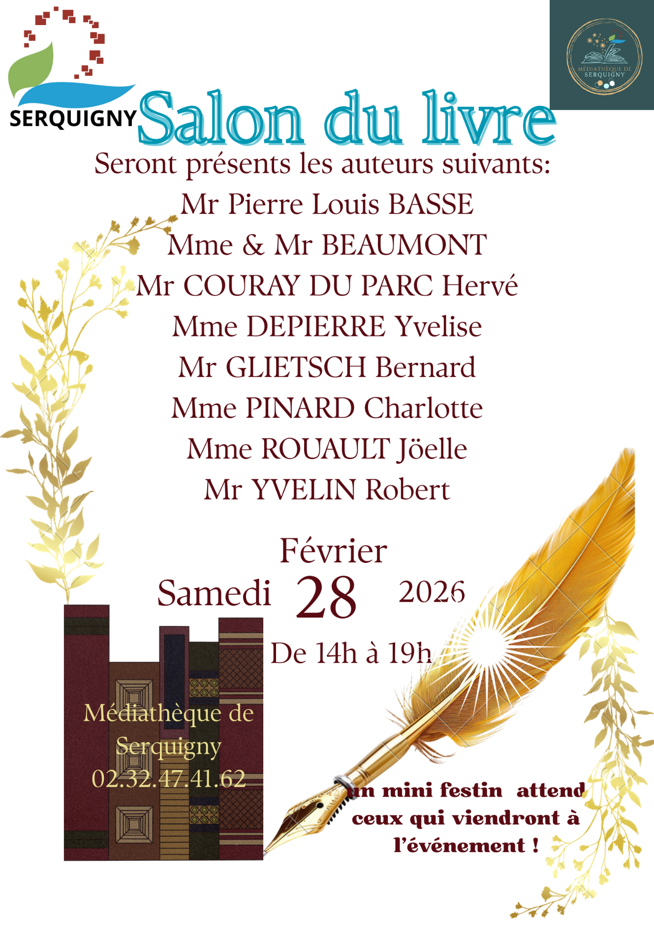 Salle des fêtes de Serquigny de 10h à 13h et de 14h à 18h Entrée libre et gratuite Salon organisé par la commune, plus d'information . ...