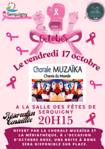 Concert de la chorale Muzaïka à la salle des fêtes dans le cadre d’Octobre Rose le vendredi 17 octobre 2025 à partir de 20h15